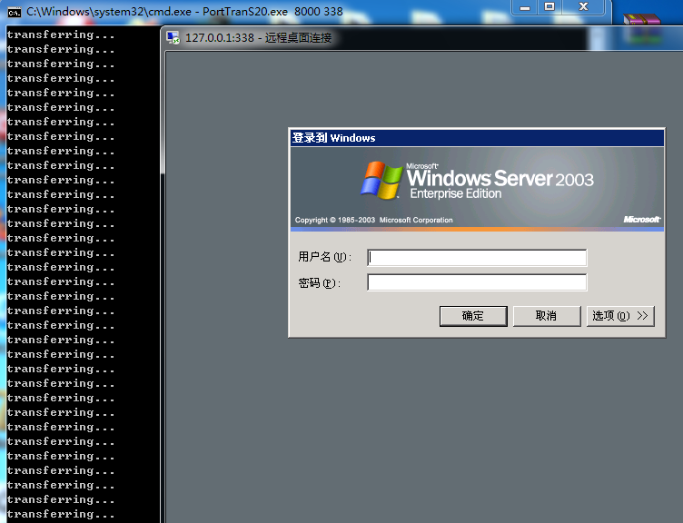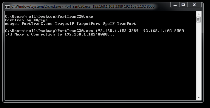 PortTranC20.exe 192.168.1.103 3389 192.168.1.102 80000x003 VPS连接3389