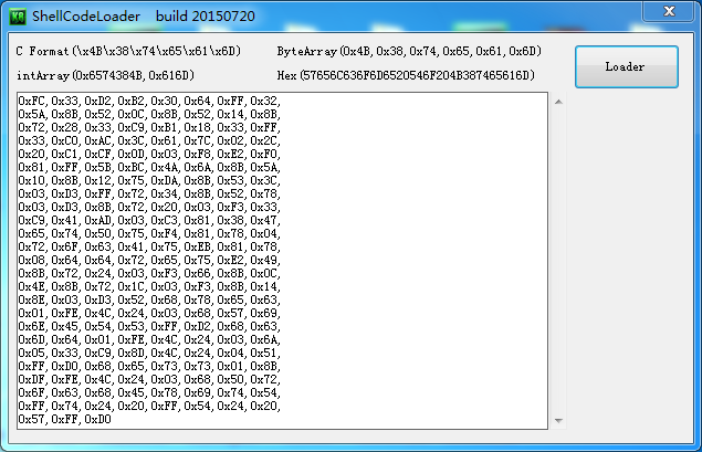 本文主要将ShellCode转成HEX,再通过加载器执行ShellCode。