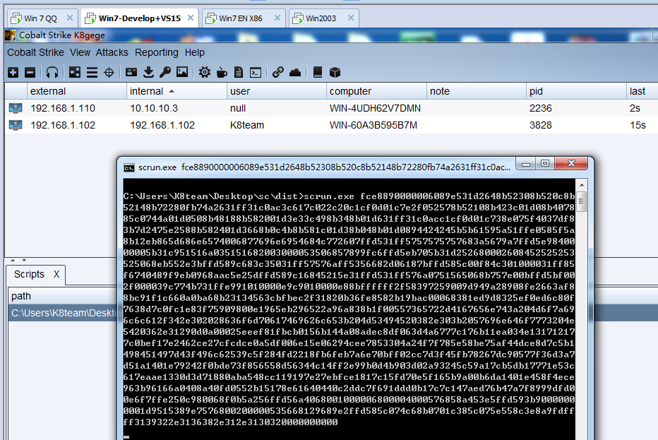 3.使用scrun.exe加载Hex格式的ShellCode,发现我们的CS上线了。