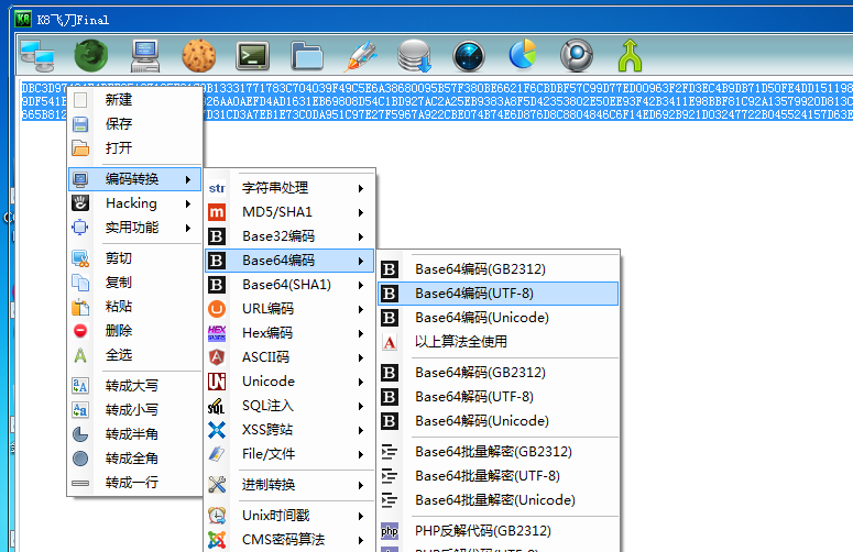 当然我们还可以对其进一步加密,先将Char转成Hex,再将HEX加密转成Base64,加密方法同上。